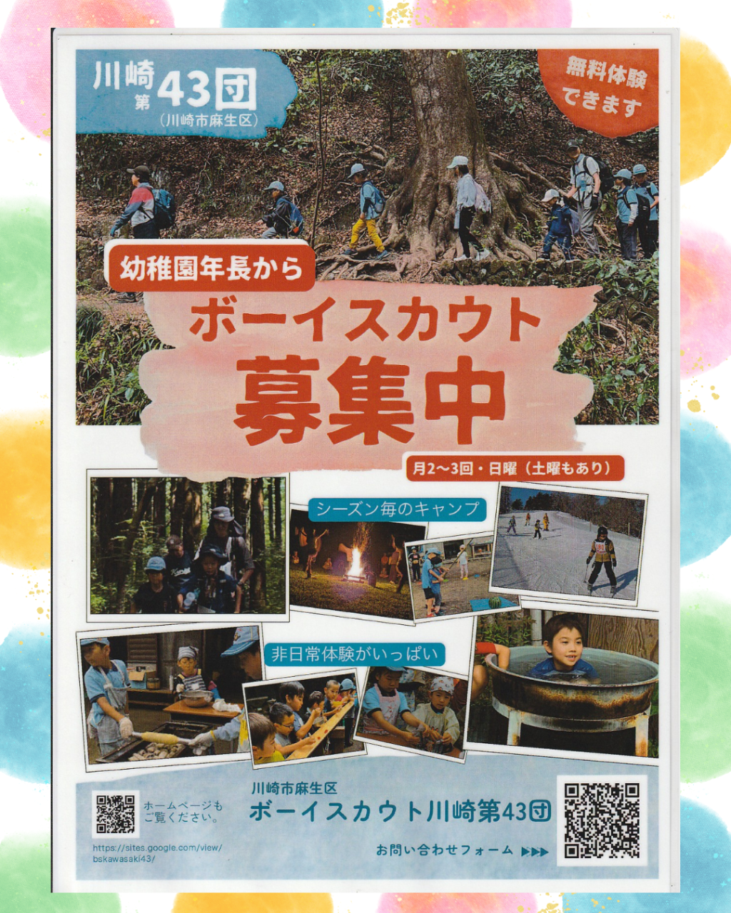 興味のある方は「ボーイスカウト川崎第43団」の公式HPやSNSで最新情報をご確認ください。
