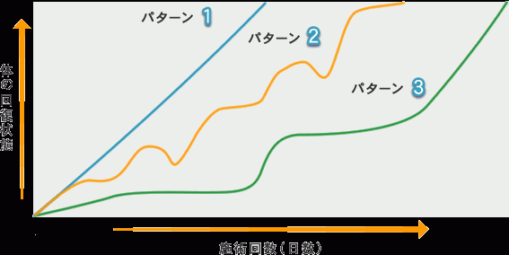 (パターン3)最初の数回は変化がないが途中で急に楽になるパターン: