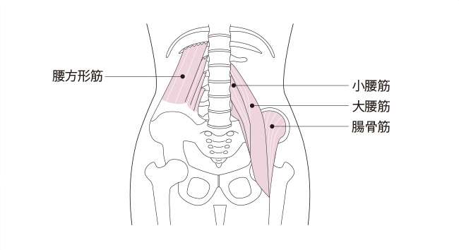 腰痛に関わる腹筋と背筋には、腹直筋、腸腰筋、腰方形筋、脊柱起立筋などがあり、この筋肉が衰えたり凝り固まったりすると、腰の負担が大きくなって、痛みにつながります。