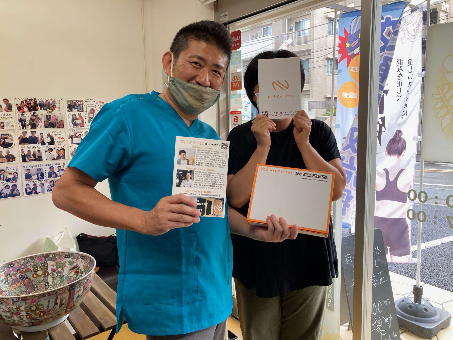 コーヒーショップのご紹介♪ 2021/09/18 ネット販売コーヒーショップのご紹介 こんにちは(*^-^*) mana整骨院のブログページへようこそ🌟 今日は台風一過、朝から強い日差しですね🌞 気温差にご注意下さい! 今日は当院のお客様のご主人が経営するコーヒーショップをご紹介します♪ 写真は昨日、お土産を持ってご来院下さったお客様と秋場です📸 コーヒーを頂いて嬉しそう😄 コーヒーショップの屋号は「Nif Coffe(ニフコーヒー)」☕ こちらはネットショップですが、生田にある焙煎所の前には自動販売機がありこちらでも購入が出来ますので お近くに行かれた際には覗いてみるのも良いですね♪ NifCoffe(ニフコーヒー)焙煎所 お土産 ブラジルと深煎りのコロンビア お店のロゴが入ったお洒落な袋と箱に梱包されていました! 進物にもぴったりですね♪ ホームページ https://www.nifcoffee.com/ 食欲の秋、美味しいコーヒーを片手にまったりしてみては… 9月20日敬老の日 お休みです 明日、9月20日(㊗月)mana整骨院はお休みです。ホームページより21日以降のご予約を承っております。宜しくお願い致します!