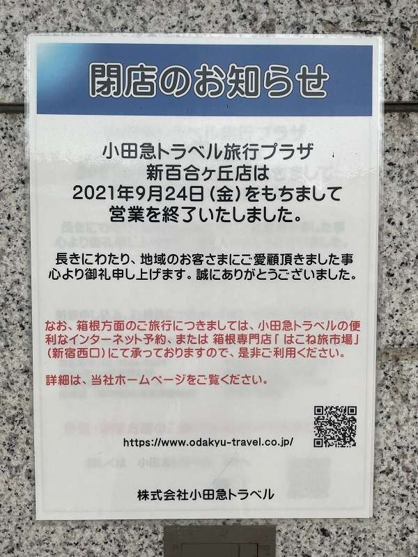 お隣の小田急トラベル、知らぬ間に閉店していたんですね。