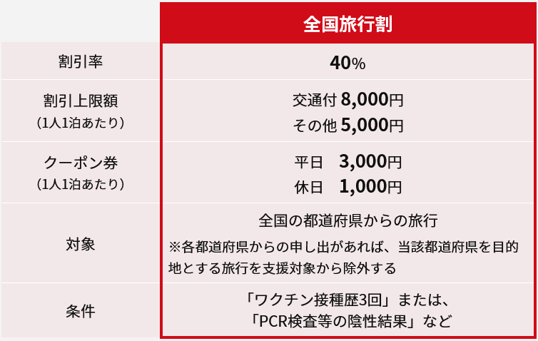 全国旅行割(全国旅行支援)⇒政府の財政支援を受けて各都道府県が実施している「県民割」の全国版のこと。