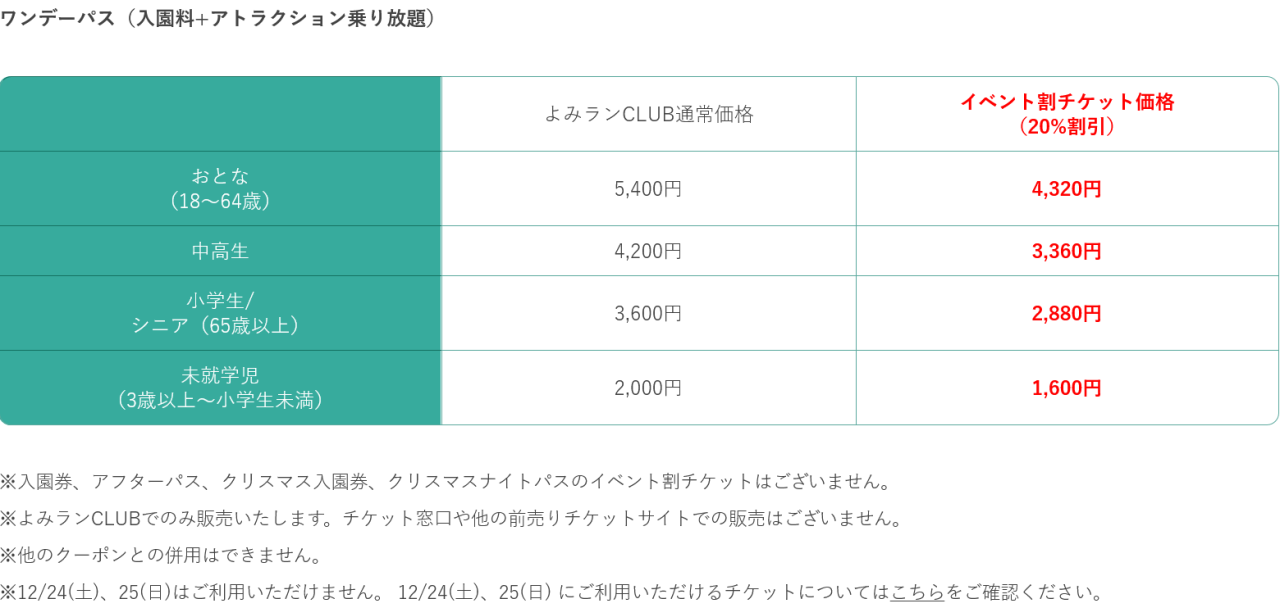 よみうりランドも20%オフ