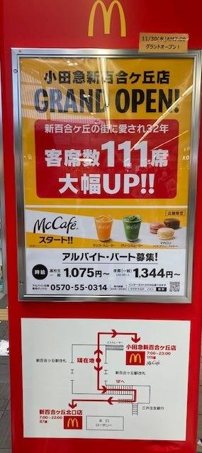 新百合ヶ丘駅でリニューアル中のマクドナルドが11月30日(水)にオープンします🎵