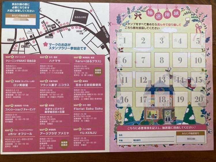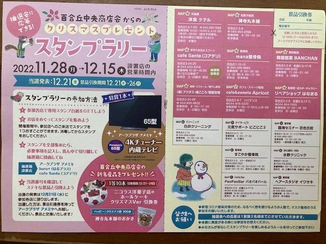 百合丘中央商店会主催のクリスマスプレゼントスタンプラリー
