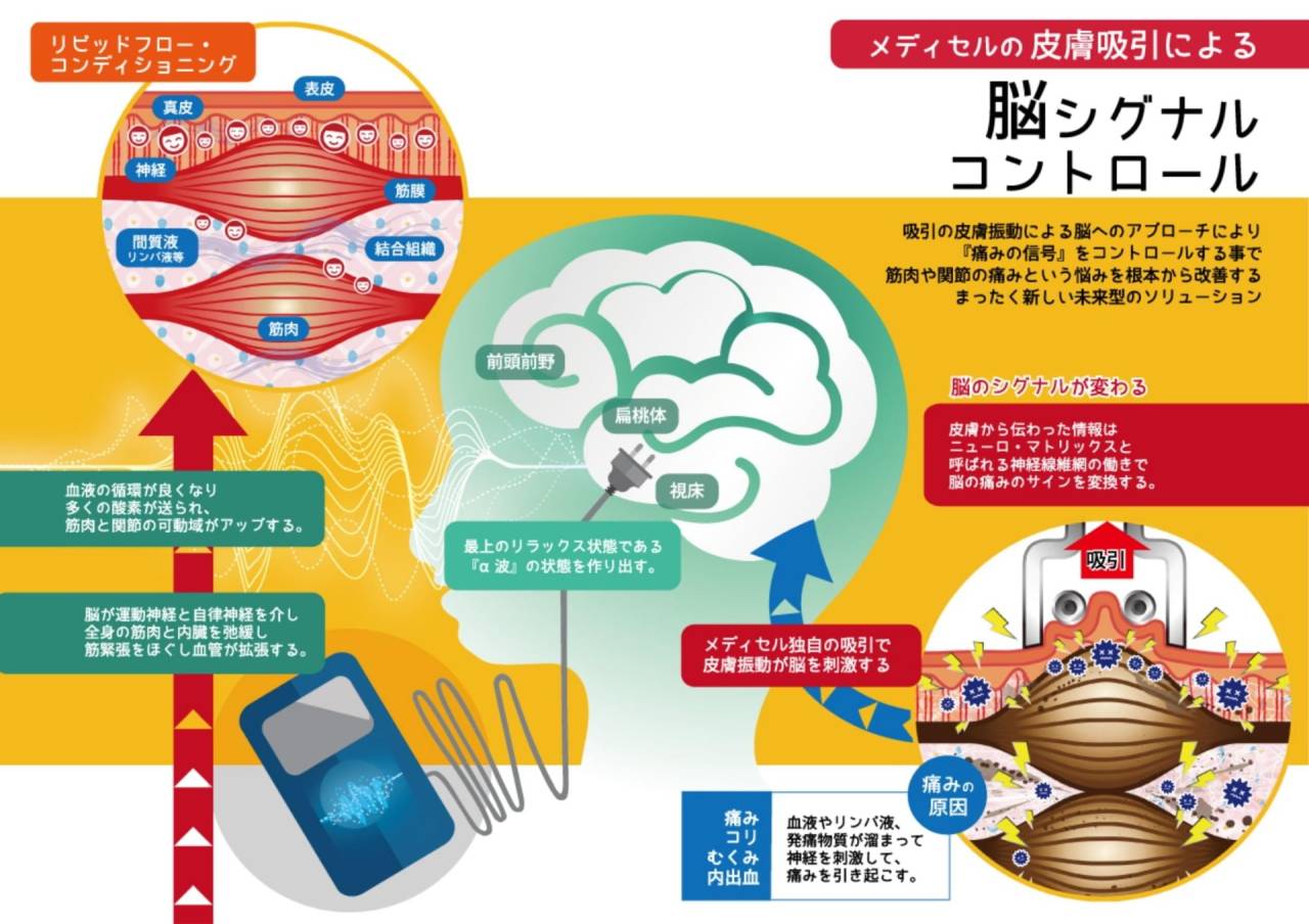 メディセル独の吸引により皮膚振動が脳を刺激し