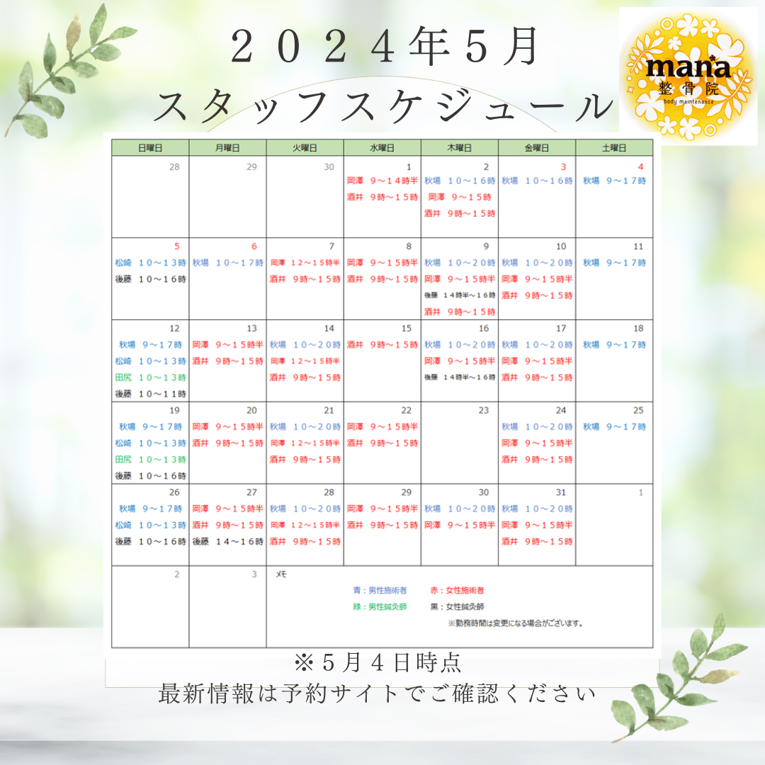 5月のスタッフスケジュールはコチラ