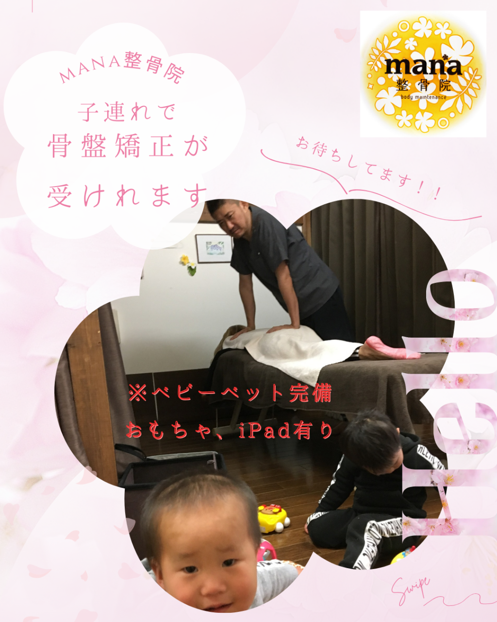 平日子連れでmana式骨盤矯正やマッサージが受けられます☺
