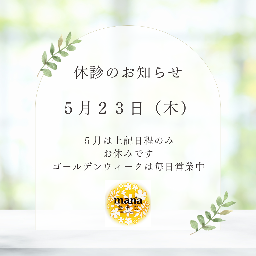 おはようございます!mana整骨院です冬季オリンピックも今日で最終日ですねカーリング女子のロコ・ソラーレの試合が注目されていますメダルの行方はいかに2月22日は休診になります。キャンセルや変更…