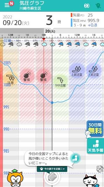 - 気圧低下